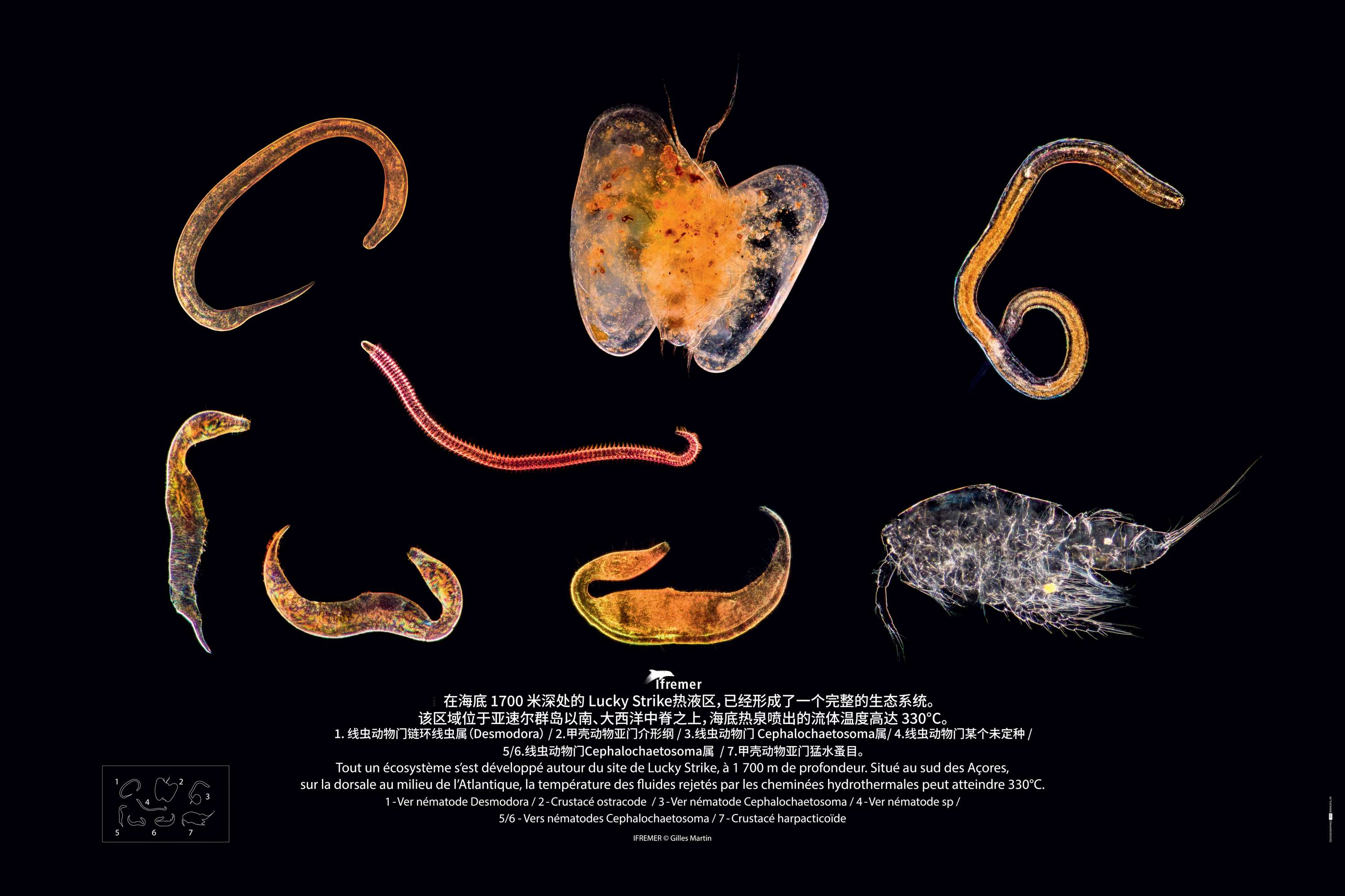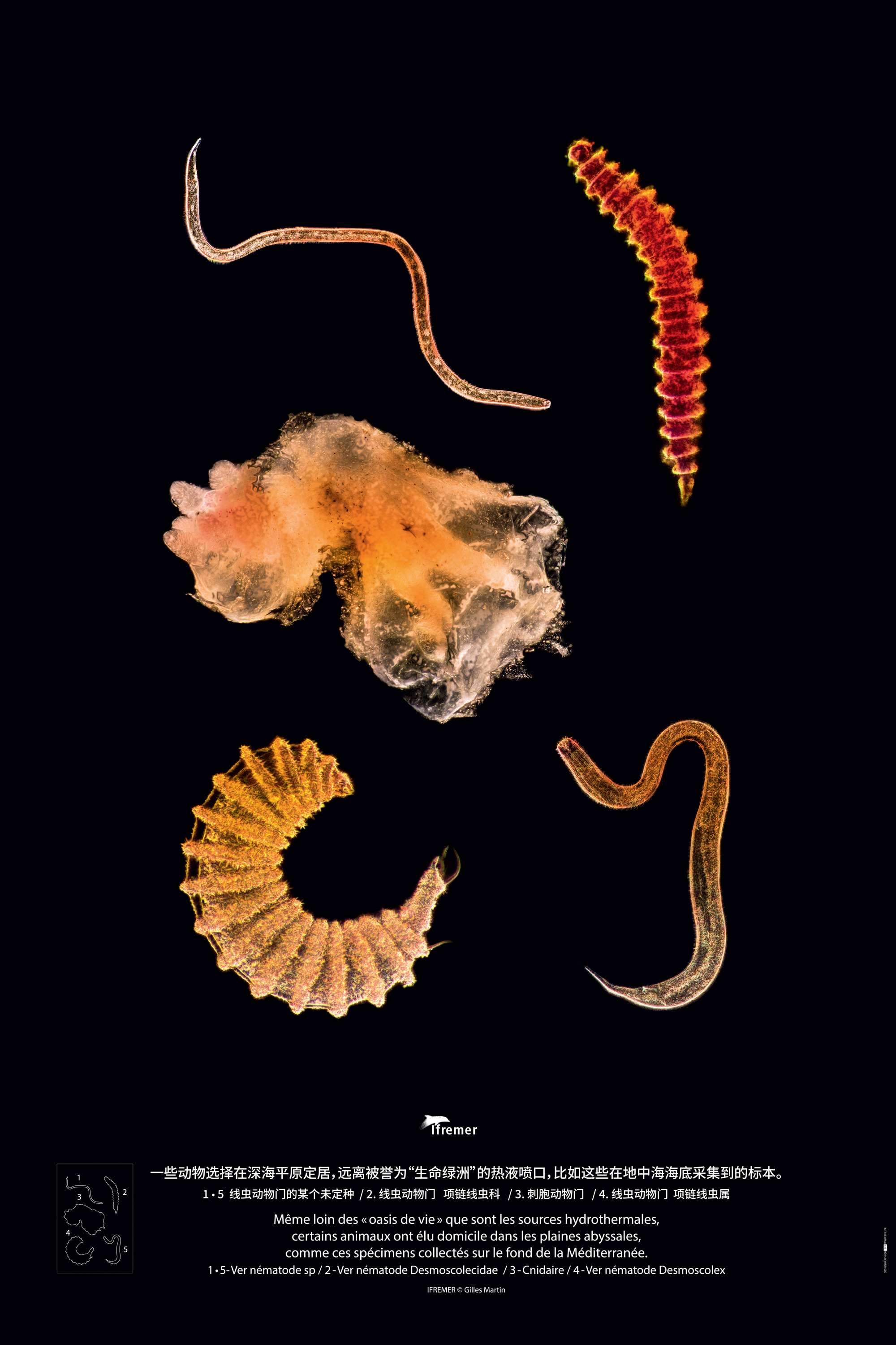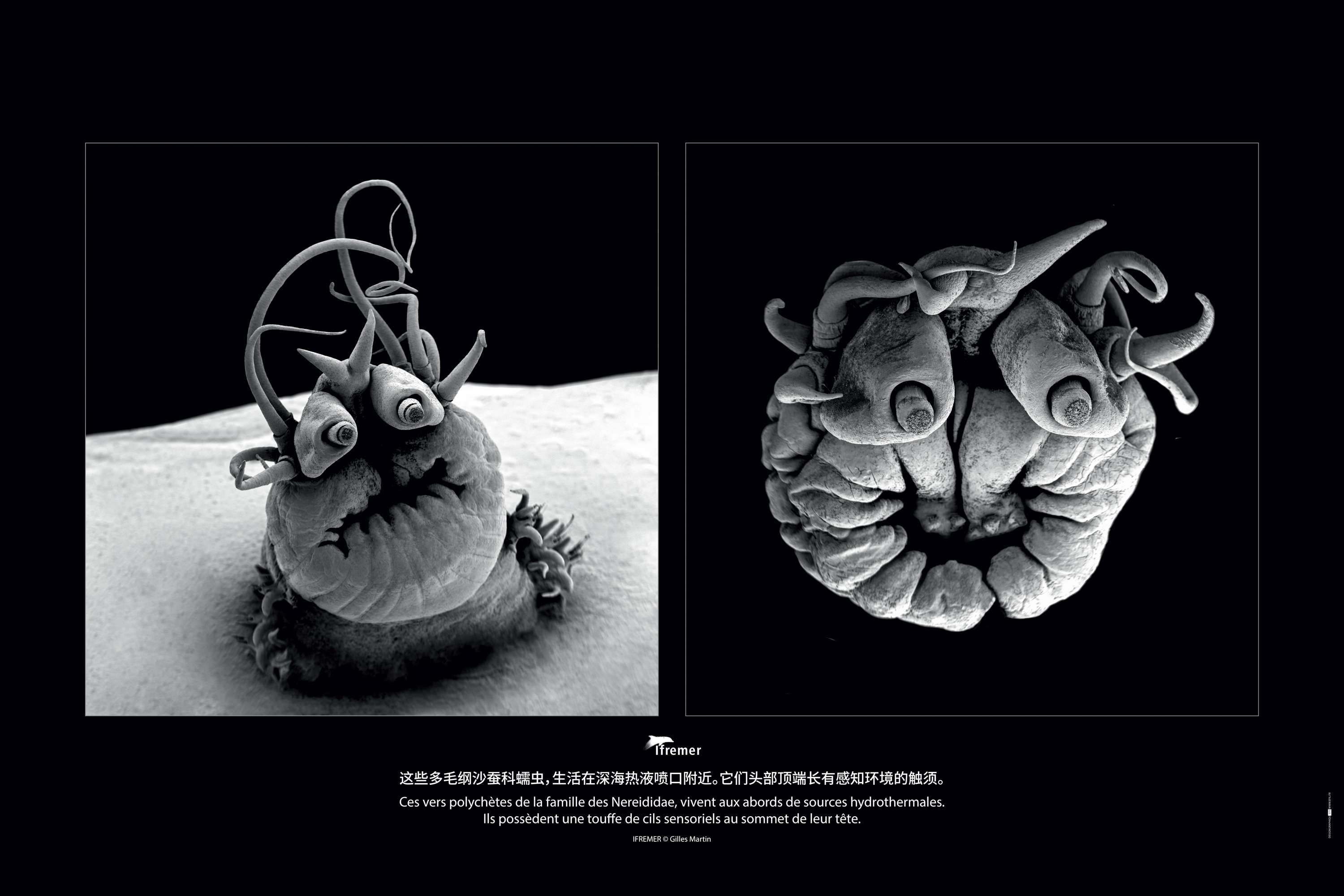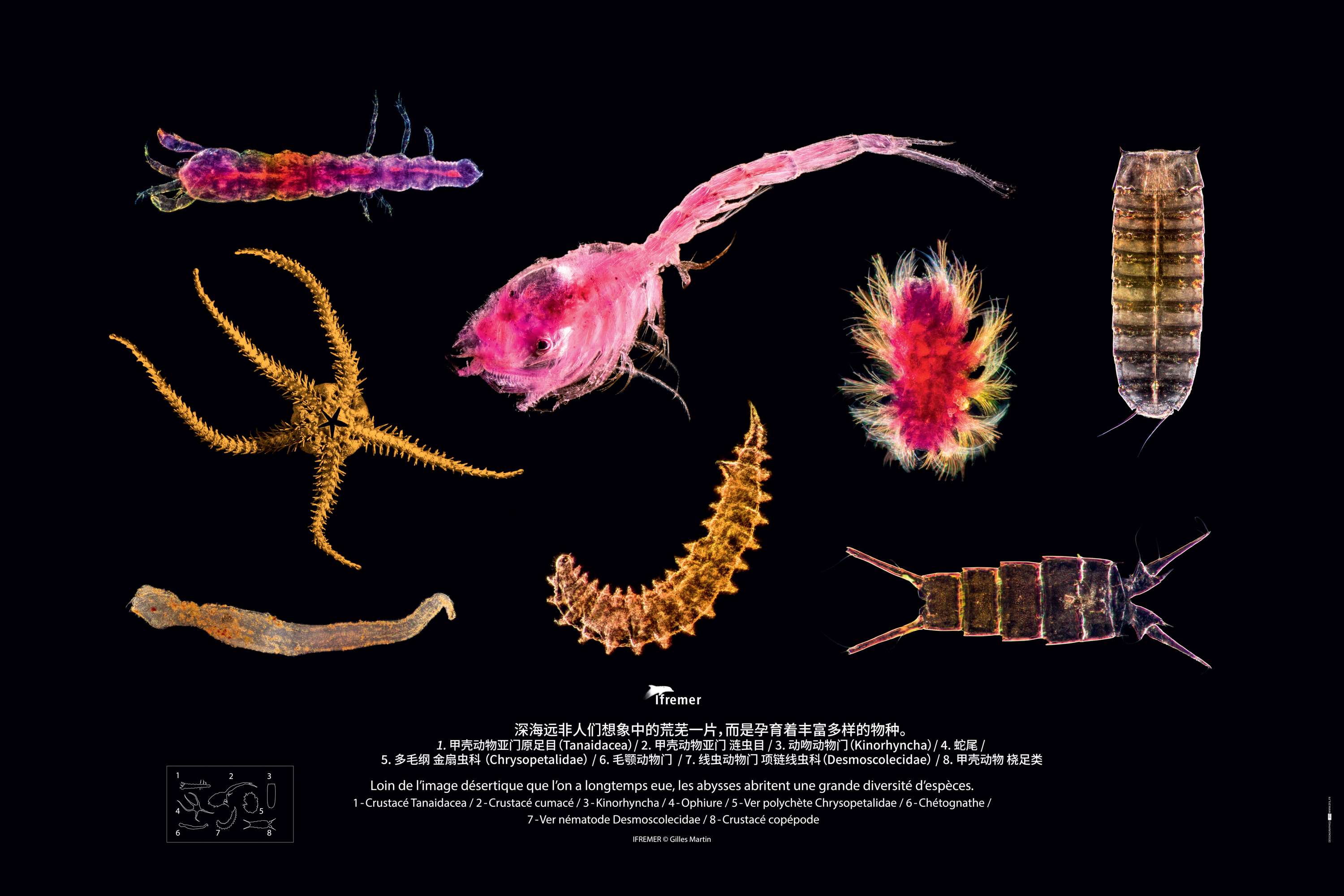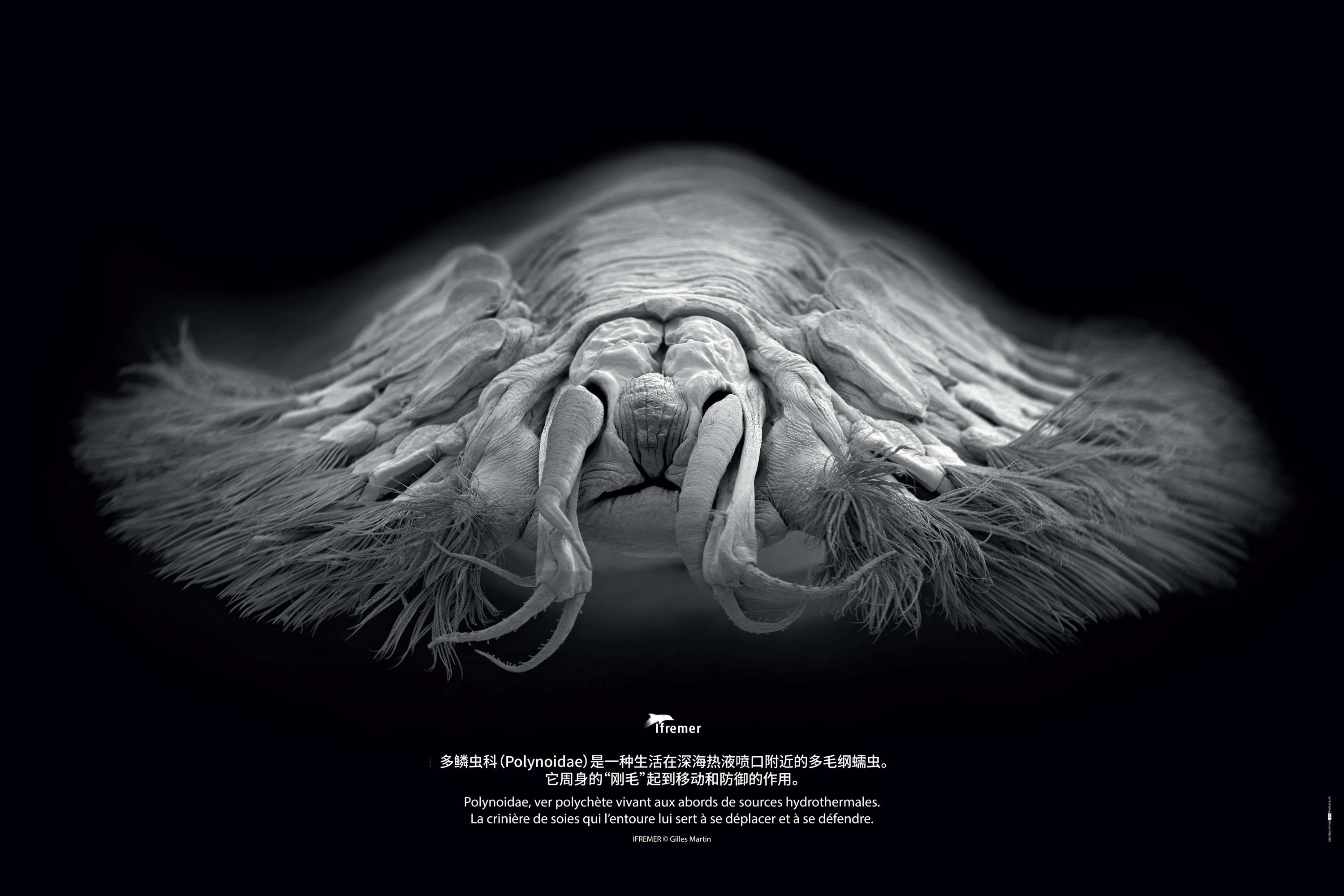 Des images grand format pour révéler la vie minuscule et néanmoins fascinante des grands fonds, voici la riche idée de l'exposition "Secrets des abysses" ! Cette exposition grand public a été réalisée en partenariat avec l'IFREMER et Gilles Martin, spécialiste de la photographie animalière. Elle découle d'une grande aventure scientifique portée par l'institut d'océanographie et nommée "Pourquoi pas les abysses ?".